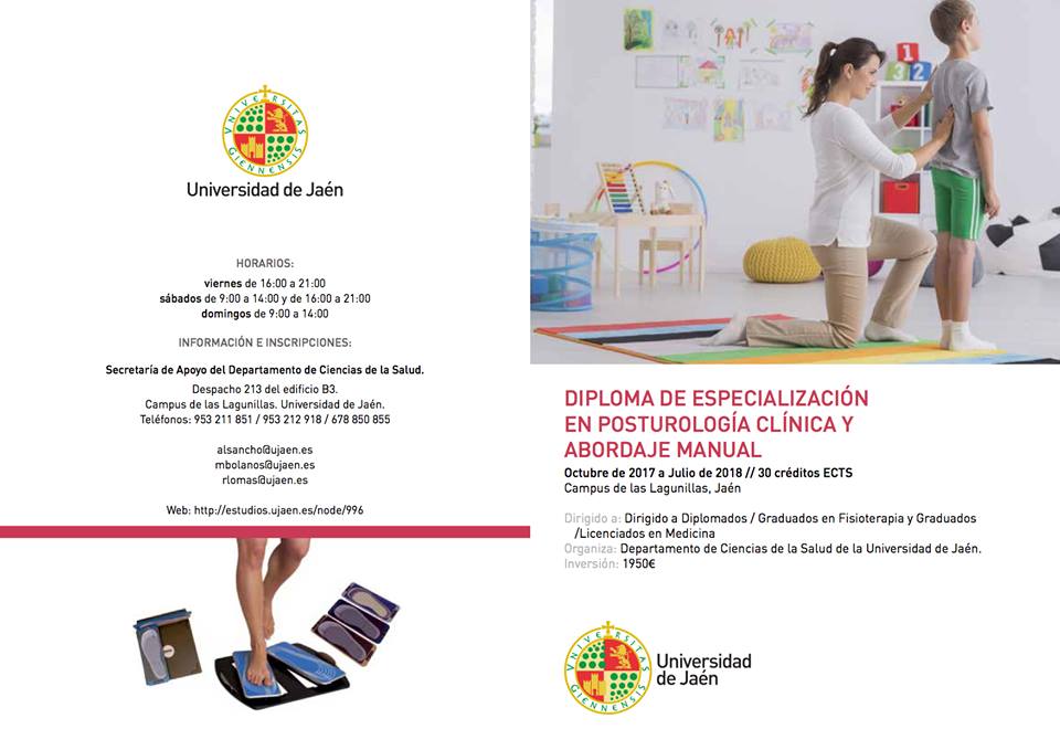 Me alegra comunicar que en el próximo curso 2017-18 colaboraré en el Curso de Especialización en Posturología Clínica que ofrece la Universidad de Jaén