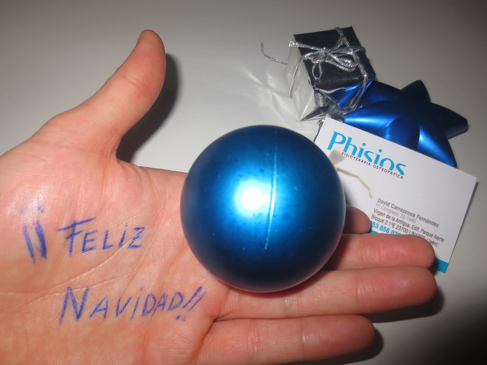 Los pacientes que me conocéis ya sabéis que no soy un fisio típico y que me encanta la originalidad y la terapia manual…así que este año voy a felicitaros de una manera muy casera y «hecha a mano» con estas 2 fotos…